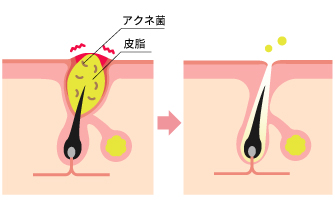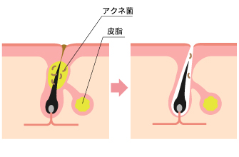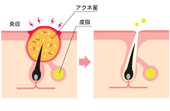 皮脂を分泌する皮脂腺を縮小させ、ニキビの原因となる皮脂の分泌を大幅に減らします。